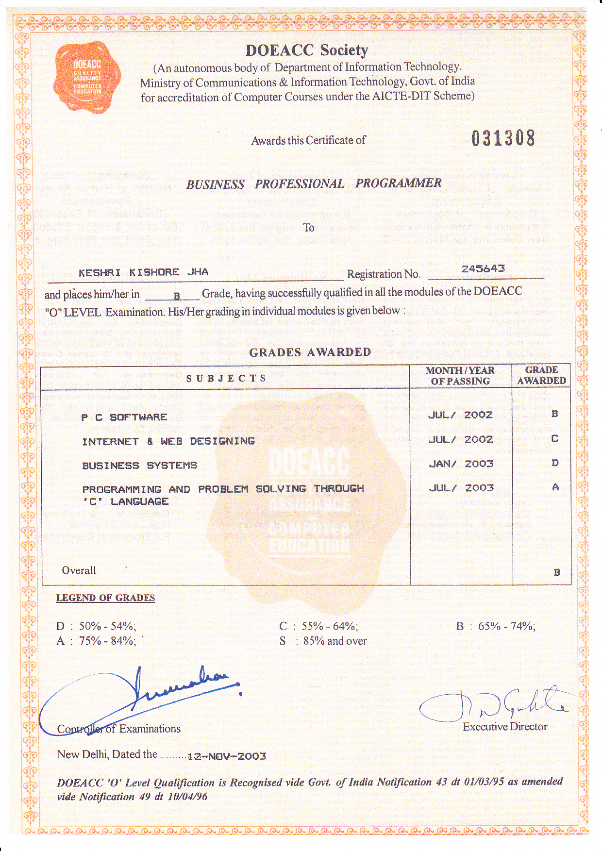 CERTIFICATATION